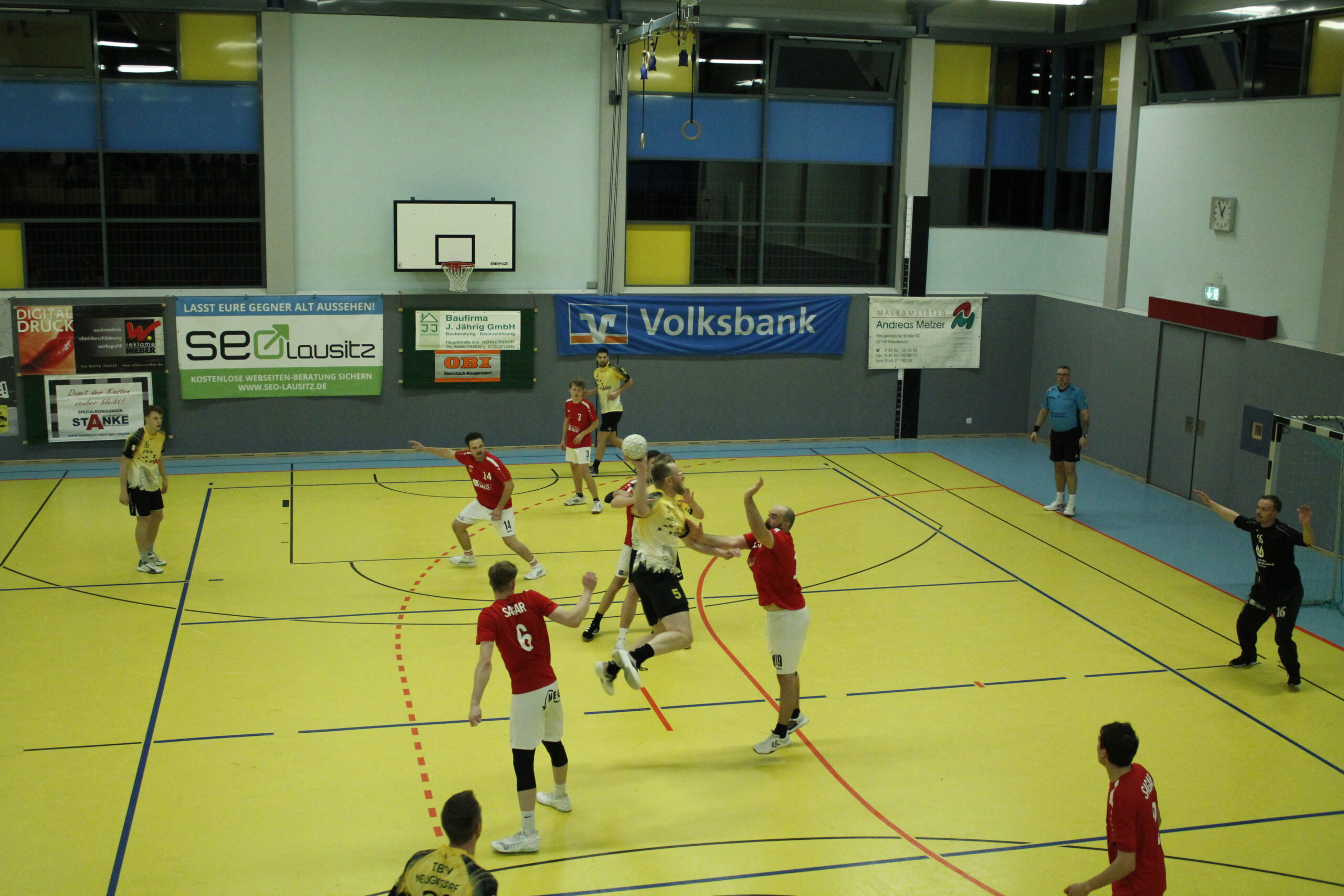 Das Tempospiel konnte absolut aufrecht gehalten werden, und auch die körperliche Präsenz von Anton half beim Erzielen einfacher Tore. Die Gäste haderten dagegen immer wieder mit Ihren Abschlüssen, auch weil Olli weitere Paraden zeigte. Das man nicht alle freien Bälle im eigenen Angriff verwertete war ärgerlich, auch weil man die Anzahl der Pfostentreffer ansteigen ließ, doch ergab sich keinerzeit die Gefahr, das Sagar davon einen Nutzen zog. Beim 27:17 nahm Sagar nochmals eine Auszeit, und wollte teils auch mit einer 5:1-Abwehr nochmal was probieren, aber auch diese Aufgabe lösten die Neugersdorfer bestens. Vor Beginn der Schlussphase hatte man sich aus einer weiterhin stabilen Abwehr heraus nun 14 Tore Vorsprung erarbeitet. Und trotz einer unglücklichen Zeitstrafe für Stefan (hatte die Spielsituation nicht sofort erkannt, und den Ballbesitz für sich erhofft), machten die TBSV-Männer unentwegt weiter mit dem Torewerfen, von allen Positonen und somit unausrechenbar. Sagar hatte wirklich nicht mehr viel Lösungen, und wechselte auch verletzungsbedingt nochmal durch. Eine letzte 5:0-Serie besiegelte den klaren Sieg. Der 40. Treffer war möglich, aber wollte wahrscheinlich keiner den Kasten Bier löhnen müssen, und so blieb es beim 39:21 zum Spielende.
