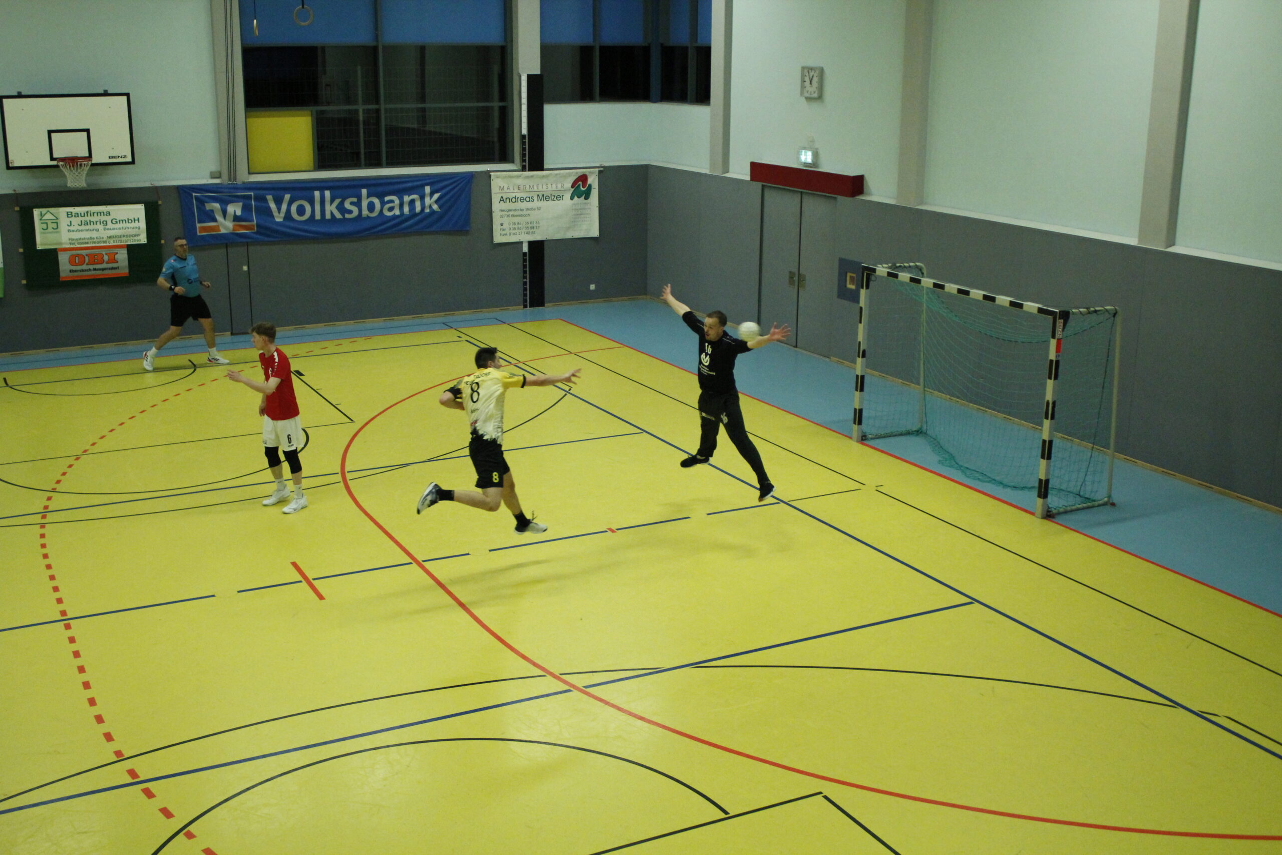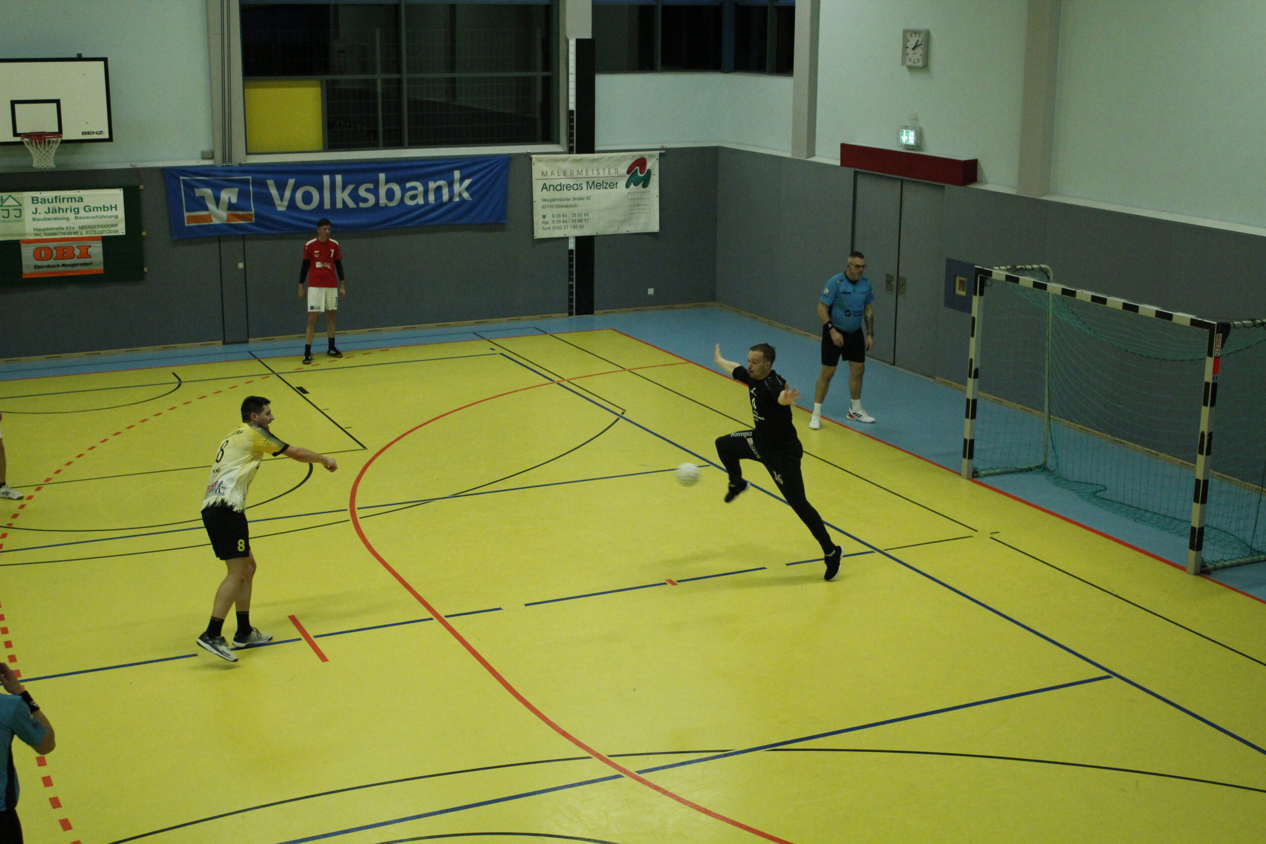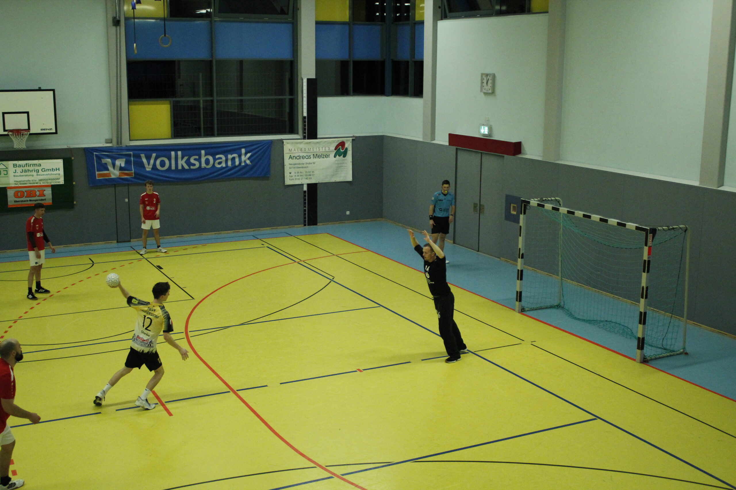 Es begann mit einer kurzen Abtastphase, wobei Olli im Tor gleich auf Betriebstemperatur war und sofort einen Strafwurf hielt und auch nachfolgend parierte. Das gab seinen Vorderleuten den nötigen Rückhalt, und man legte eine durchaus eindrucksvolle 8:1-Serie hin, die Johannes, Nick und Konrad mit sehr schönen Toren prägten, auch die Quote von 100 % war eindrucksvoll. Sagar musste reagieren und nahm eine Auszeit. So richtig unterbrechen konnten diese 60 Sekunden Pause den Vorwärtsdrang des TBSV aber nicht. Aus einer Kombination aus Paraden, und sehr starker Abwehr-Arbeit hatte man die Gäste im Griff. Deren junger Rückraum spielte zwar temporeicher, anders als was man von Sagar sonst kannte, aber die individuellen Aktionen endeten oft in Ballverlusten. Die Gegenstöße daraus wurden gut, aber nicht immer effizient genug zu Ende gespielt. Die Geduld im Positionsangriff war erfolgreicher und auch die Überzahlsituationen halfen, die nötigen Lücken in die Gäste-Abwehr zu reißen und sich schon vor der Pause auf 10, und auch 11 Tore abzusetzen. Eine TBSV-Auszeit wurde genommen, um die ganz unnötigen Fehler anzusprechen. Auch der Torhüter-Wechsel beim TBSV brachte keinen Abbruch, denn auch Stefan hatte sofort seine Hände am Ball und sorgte für die defensiv starke erste Halbzeit. Mit 19:11 ging es in die Kabinen.