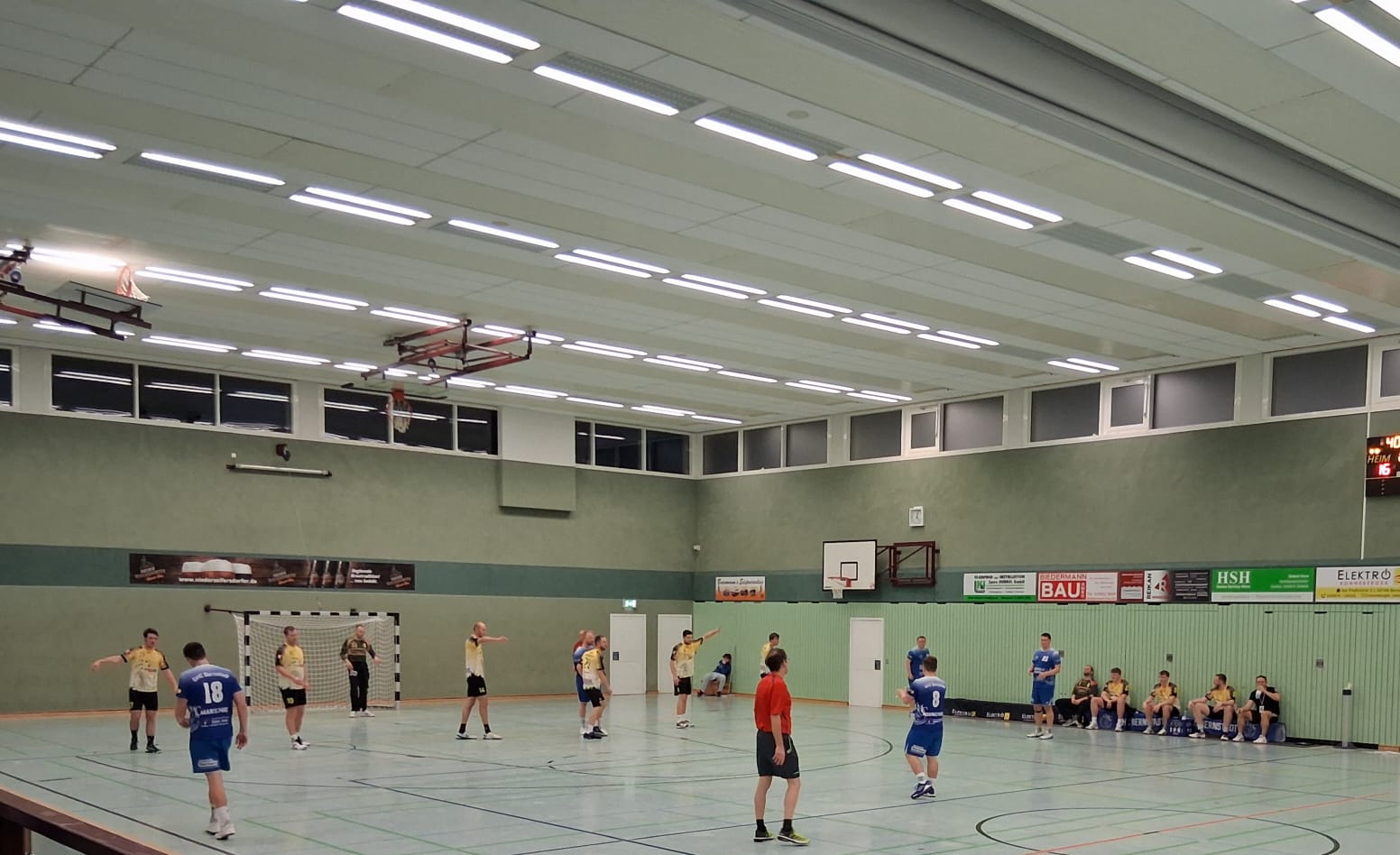 Um 16 Uhr ging es los. Doch irgendwie kamen beide Mannschaften noch nicht so richtig in Fahrt. Zwar ging man mit 1:4 in Führung, brauchte allerdings auch einige Anläufe dafür. Die Bernstädter dagegen spielten langatmige Angriffe ohne viel Tiefe, und noch weniger Gefahr. Doch die erste Unterzahl des TBSV legte ein paar Lücken zu viel offen und es gab zu einfache Gegentore zum 4:4.