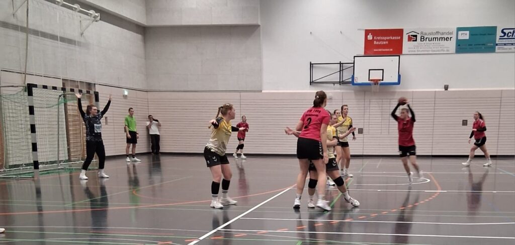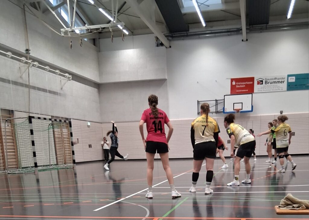 Und die half wohl wahrlich Wunder. Eine 1:5-Serie zu Beginn der 2. Halbzeit brachte die Hoffnung, auf Punkte, zurück ins Spiel des TBSV. Aus einer stabilen agierenden Abwehr und wichtigen Paraden von Joanne kam man in nur 5 Minuten auf 17:16 heran. Leider nahm der Bischofswerdaer Trainer, für sein Team, zum richtigen Zeitpunkt die Auszeit. Denn anschließend kassierte man wieder zu einfache Gegentore (21:17). Mit viel mehr Biss kamen die TBSV-Frauen aber noch einmal zurück, und konnten nach Ballgewinnen nun sogar den Ausgleich (22:22, 23:23) erzielen. Doch es gelang keine Wende, immer wieder nutzten die Gastgeberinnen die entstandenen Lücken und machten drei Tore in Folge. Zudem waren deren Aktionen in die Tiefe der TBSV-Abwehr nur auf Kosten eines Fouls und folgender Zeitstrafe zu unterbinden. Es wurde gekämpft, pariert und abgewehrt, was möglich war. Doch nach dem 27:25 des TBSV, landete wieder die Grüne Karte seitens der Bischofswerdaer beim Kampfgericht. Letztes Aufbäumen abermals unterbrochen. Weitere zwei Gegentore und vier Tore Rückstand nahmen den Neugersdorferinnen den letzten Wind aus den Segeln. Ein paar überhastete Aktionen im Aufbauspiel besiegelten die Niederlage. Mit 30:27 ging der Sieg an Bischofswerda.