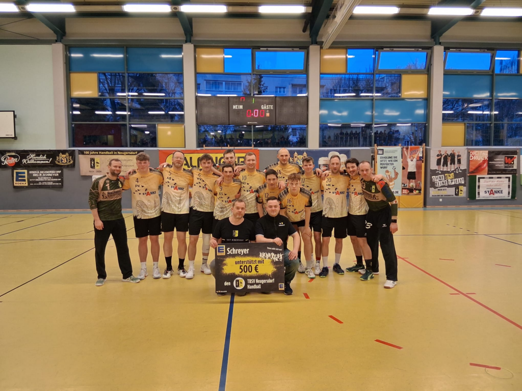 Die Frauen machten es vor, und dem wollten die Männer natürlich in Nichts nachstehen, also machte sich das gesamte Team warm und wollte die Tore-Maschine weiter auf Volldampf laufen lassen. Zudem gab es eine neue Stimme am Hallen-Mikro, Buri / Burkhard Hölzel, übernahm die Ansagen. Zudem konnte Michael Krech vor der Partie noch die Scheck-Übergabe von 500 € bekannt geben, die im Rahmen der Edeka-Fan-Card-Aktion erreicht wurden, und in Person des Edeka-Mitarbeiters Toni an Thomas Gloßmann übergeben wurde.