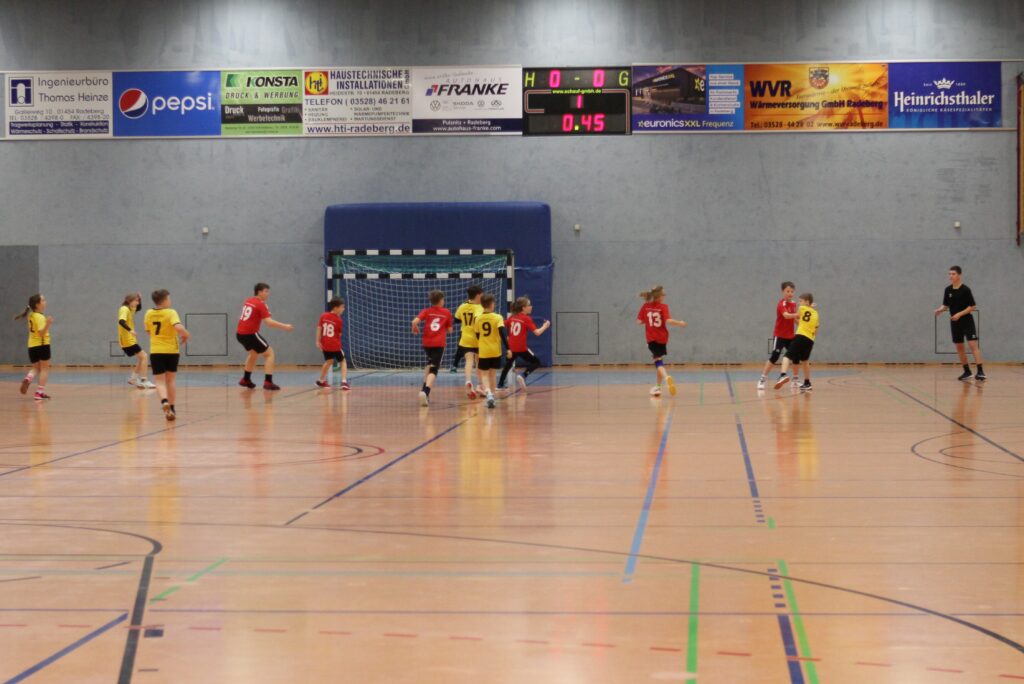 Am Samstag, den 07.03.2026, ging es für unsere E-Jugend früh zeitig nach Radeberg, einer neuen Spielstätte für unsere Kids. Im ersten Spiel traf man erneut auf den Gegner der Vorwoche Königsbrück. Ein so deutlicher Sieg wie zuvor sollte es jedoch nicht werden. Vielleicht doch noch nicht ganz ausgeschlafen, suchten unsere Kids zu Spielbeginn noch das Tor.